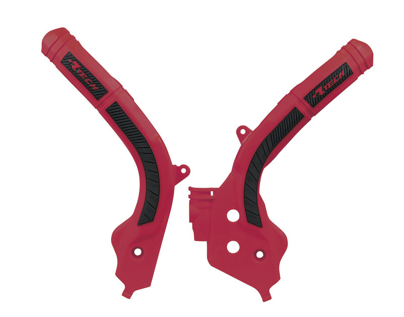 Protectores de cuadro fabricados con un cuerpo externo de tecnopolímero y una pieza interna de goma diseñada para maximizar el agarre entre el protector y la bota. Incluye kit de fijación con abrazaderas.